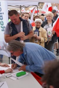 Przedstawiciele naszej KZ z Warszawy, podczas manifestacji i długo po jej zakończeniu, zbierali w imieniu Regionu Mazowsze NSZZ „Solidarność” podpisy pod wnioskiem o referendum w sprawie tzw. Zielonego Ładu (jak oceniają organizatorzy zebranych zostało 150 tysięcy podpisów).